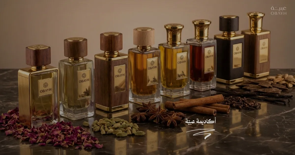 - مكونات العطر: افتتاحية وقلب وقاعدة العطر.